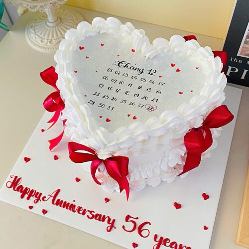 Bánh Kem Đốt Cháy Hình Trái Tim Nơ Đỏ DC01