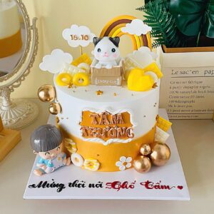 Cách Đặt Làm Bánh Thôi Nôi Bé Trai Tone Màu Vàng